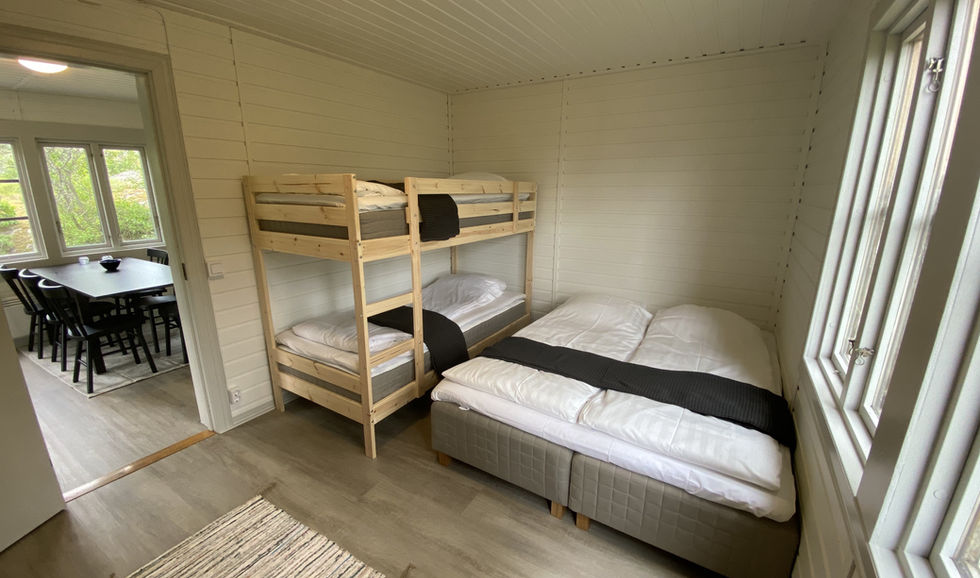 You sleep in a double bed (160 cm) and two bunk beds in one and the same bedroom. Of course, the associated duvets and pillows and bed linen are always included in the rent.